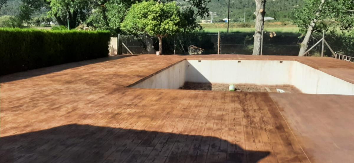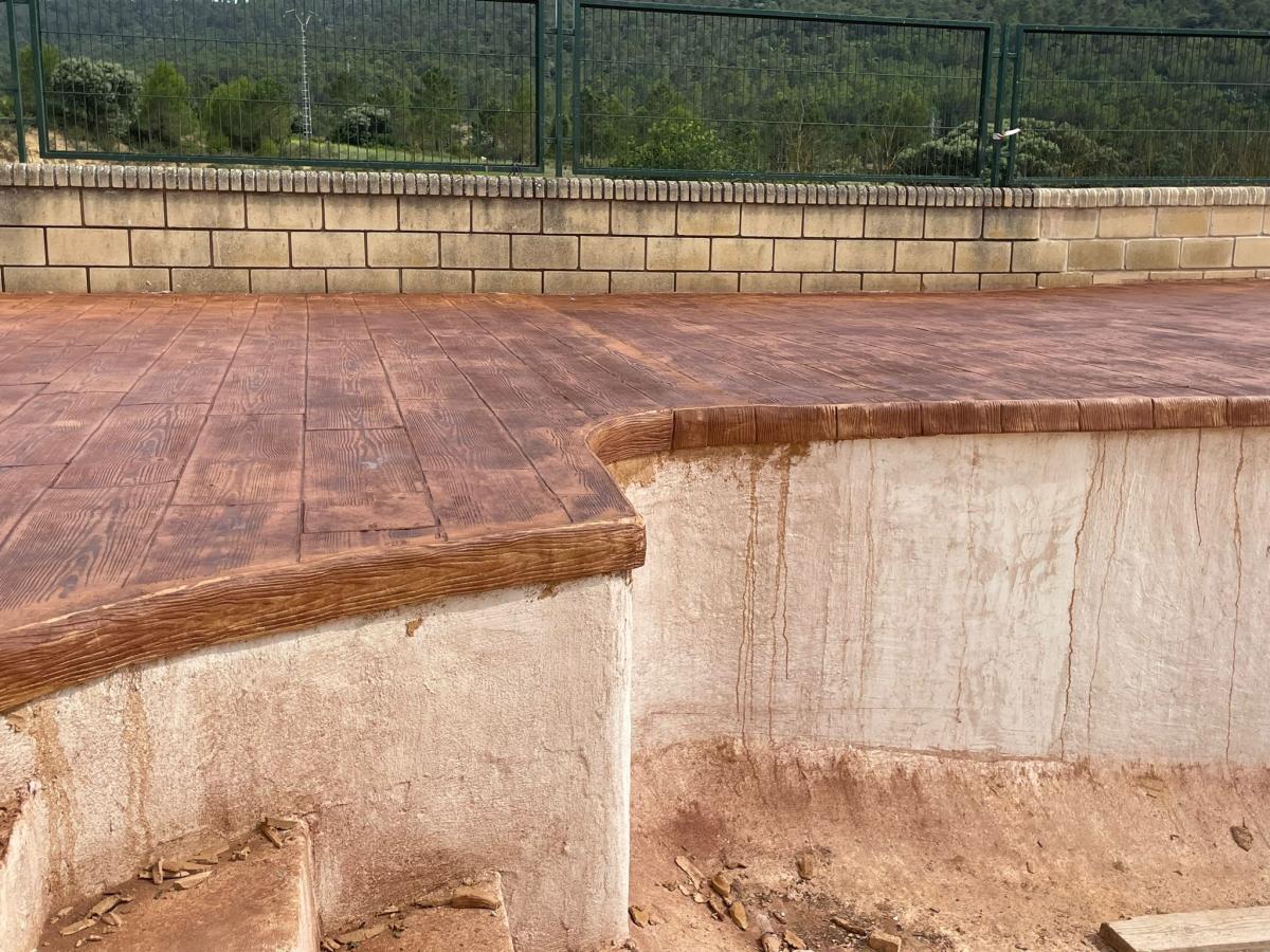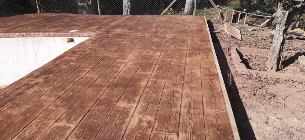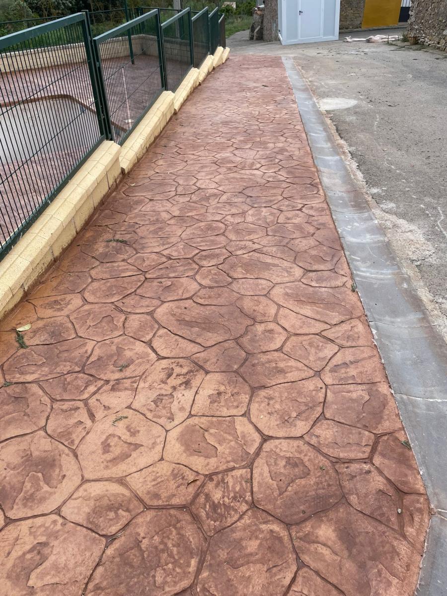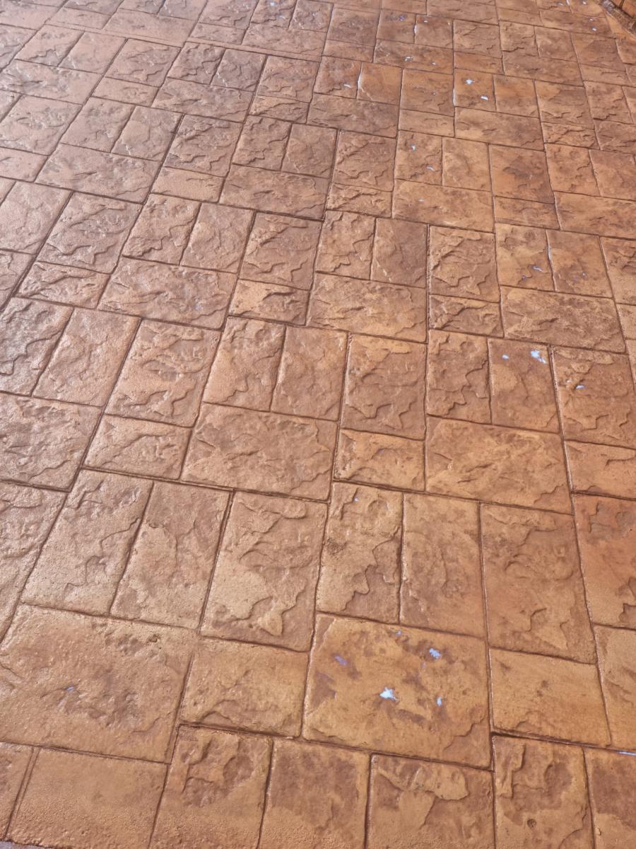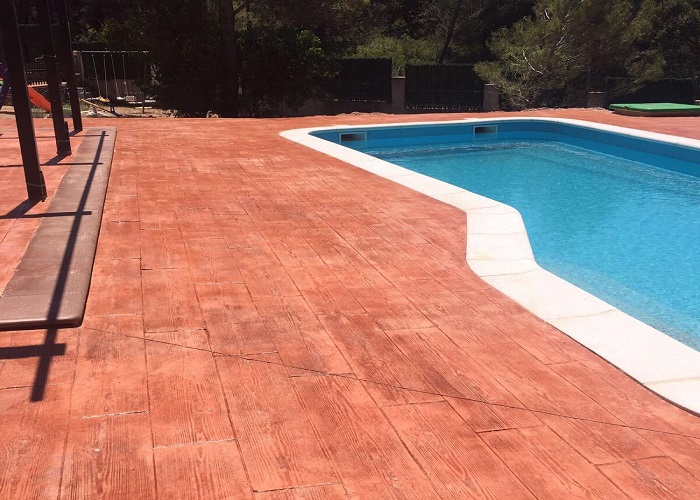 Hormigon Impreso : este pavimento se realiza aplicando capas de hormigón fresco añadiendo una capa de rodadura especial. Resulta muy estético, y podemos aplicar diferentes texturas, colores y acabados (pizarra, adoquines, loseta, etc.). Conseguirá una imitación de parqué, piedra…
